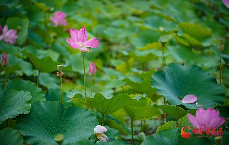 盛夏時節,甘肅成縣裴公湖的荷花爭相盛開,吸引大批游客前來觀賞,拍照打卡。