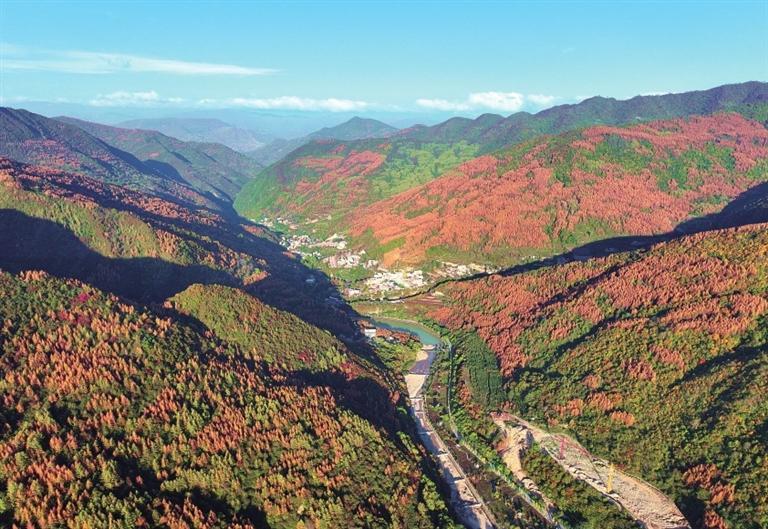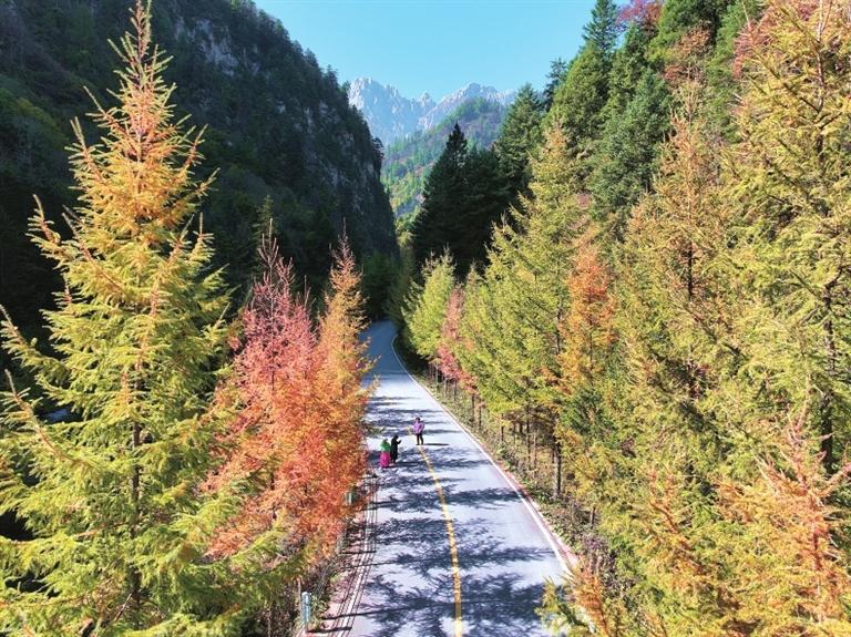 金秋時節,位于宕昌縣的官鵝溝國家森林公園秋色盡染,斑斕如畫。