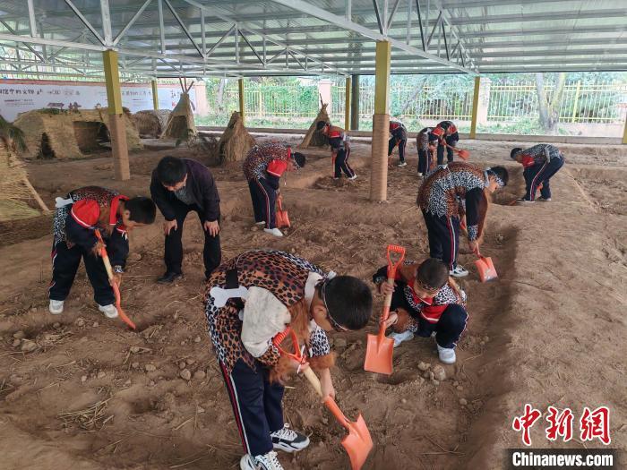 10月16日,大地灣博物館開(kāi)展“史前工坊”特色主題社教活動(dòng),吸引大批孩子參與體驗(yàn)。 (秦安縣委宣傳部供圖)