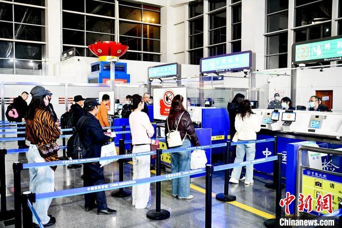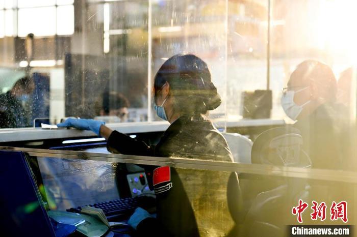 2024年11月7日,蘭州邊檢站執勤民警驗放國際航班旅客。王翔宇 攝