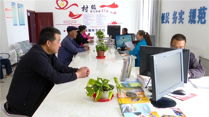 圖為玉門市黃閘灣鎮梁子溝便民服務大廳,工作人員按照“玉門市村級權力清單37條”規定程序,為村民辦理低保救助申請、戶口遷入遷出、林木采伐手續等服務事項。