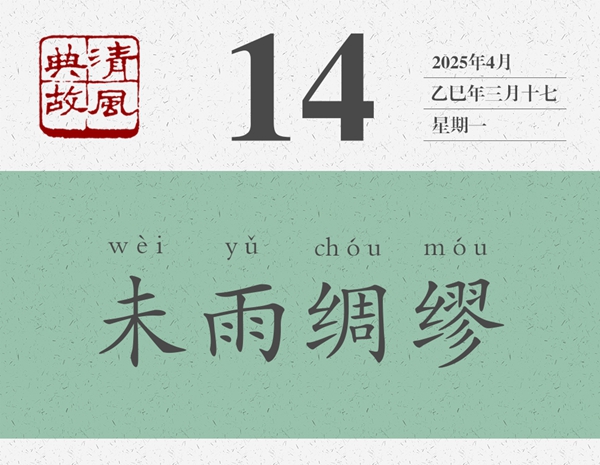 《詩經·豳風·鴟鸮(chī xiāo)》共四章,每章五句,前兩章曰:“鴟鸮鴟鸮,既取我子,無毀我室。恩斯勤斯,鬻子之閔斯。迨天之未陰雨,徹彼桑土,綢繆牖戶。今女下民,或敢侮予?”鴟鸮,貓頭鷹,指代壞鳥。恩,通“殷”,殷勤。鬻,通“育”,養育。閔,病也。徹,通“撤”,撤去。桑土,即桑杜,桑根。綢繆,緊密纏縛,引申為修繕。這兩章的大意是,貓頭鷹啊貓頭鷹,你這惡鳥已經奪走了我的孩子,不要再毀掉我的窩巢。我含辛茹苦,為養育孩子已經病倒了!我趁著天沒有陰雨,撤去那桑根,將窗扇門戶縛緊修好。現在你們樹下的這些人,還有誰敢欺凌我?