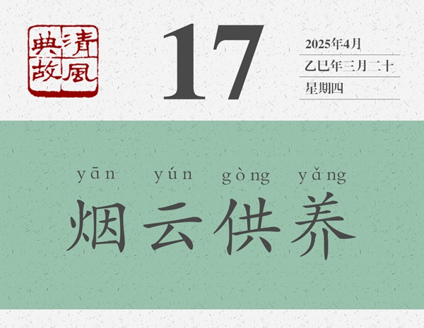 煙云,即山水風(fēng)景。供養(yǎng),即陶冶滋養(yǎng)。“畫中煙云供養(yǎng)”的原意是,黃公望和米友仁之所以貌如童顏,神明不衰,是因?yàn)槠渖剿嬛袩熡隄鳚鳌⒈§F繚繞的意境滋養(yǎng)了他們。后世即以“煙云供養(yǎng)”為典,喻美好的自然環(huán)境,可以舒暢人的心情,撫慰人的精神。這就是為什么人們把自然環(huán)境好的地方稱作“養(yǎng)生之地”的原因。錢大昕《梁山舟前輩八十》詩(shī):“占得西湖第一峰,煙云供養(yǎng)幾千重。門懸曼碩山舟字,人識(shí)坡公笠屐容。”