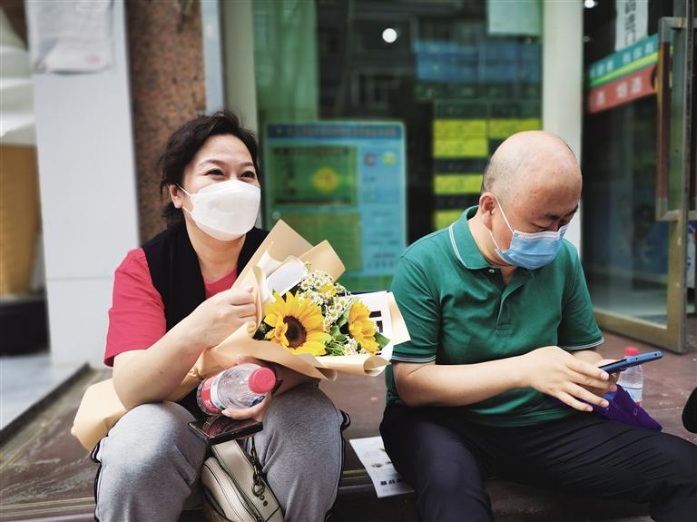 記者在等待的家長群里來回穿梭,發現給孩子送鮮花的家長可真不少,上前攀談,手捧向日葵的媽媽爽朗大方,她向記者解釋了送孩子向日葵的寓意:“我家的孩子是女孩,是蘭州一中的學生,我希望她考個好成績。向日葵的寓意就是‘一舉奪魁’。我們很緊張但是不敢表露出來,不能把這種情緒傳導給孩子。送她花,就是為了讓她心情好一些。”