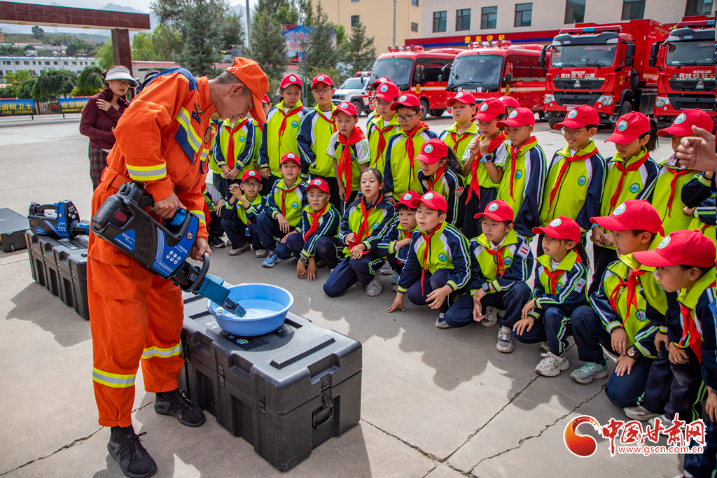 9月10日,張掖市肅南裕固族自治縣紅灣寺小學的師生們走進市森林消防支隊肅南大隊營區,近距離了解消防工作,學習安全知識,體驗消防員的訓練與生活,迎來了一堂特別的“開學第一課”。