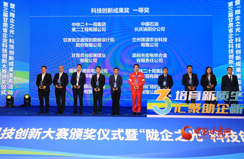 本屆大賽中,甘肅酒鋼集團宏興鋼鐵股份有限公司、中國市政工程西北設計研究院有限公司、大禹節水集團股份有限公司等企業摘得科技創新企業金獎。一批涉及高端裝備、新材料、新能源、生物醫藥、現代農業等領域的核心技術成果榮獲科技創新成果獎。國網甘肅省電力公司電力科學研究院趙金雄等來自企業研發一線的20位杰出科技工作者獲評“科技創新達人獎”,金昌市科學技術協會等6家單位獲優秀組織獎。