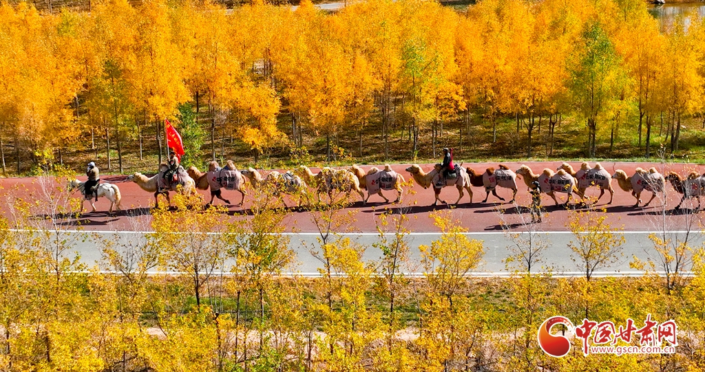 金秋十月,張掖市甘州區黑河林場萬畝胡楊林迎來流金季節。10月15日,一支駝隊行進其間,領略這最美的時光。這片昔日亂石林立、滿目瘡痍的黑河亂石灘,如今已成為6萬畝的城市森林,游人、駝隊行進其中,與金色林海共同構成了一幅動人的生態畫卷。