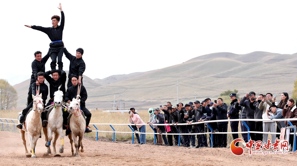 10月14日,山丹縣的一場賽馬會上,騎手們正策馬揚鞭,為游客展示多項馬術項目。山丹縣毗鄰祁連山自然保護區和山丹軍馬場,坐擁優質草場資源,養馬歷史逾兩千年,馬文化底蘊深厚,產業基礎扎實。近年來,當地圍繞馬文化主題,建設了賽馬場、觀光馬道、育馬基地等設施,致力于為游客與馬術愛好者打造一個獨具特色的馬文化體驗地。