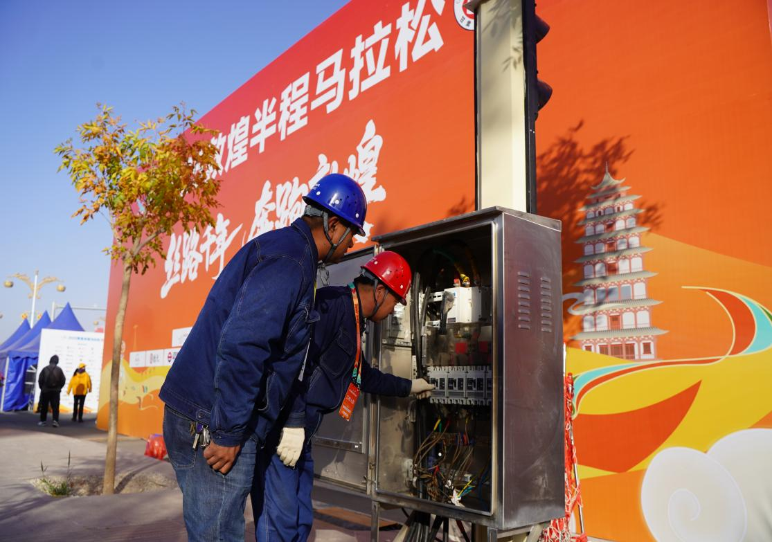 10月19日,2025敦煌半程馬拉松城市“鹿”跑挑戰賽鳴槍開跑,5000名選手齊聚敦煌,用奔跑展現活力與激情。國網敦煌市供電公司的保電人員全程堅守現場,為賽事順利進行提供堅實可靠的電力保障。