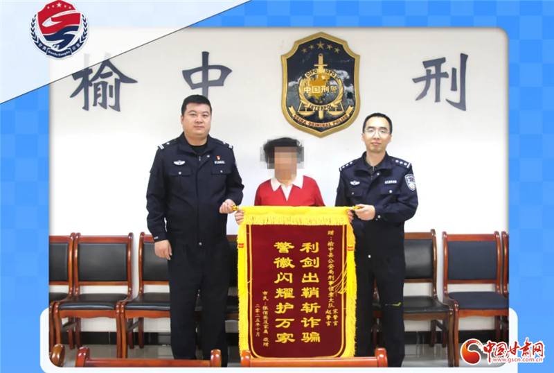 中國甘肅網11月3日訊(西北角·中國甘肅網記者 程健)近日,蘭州市的張女士將一面印有“利劍出鞘斬詐騙 警徽閃耀護萬家”的錦旗,送到了榆中縣公安局刑警大隊辦案民警手中。