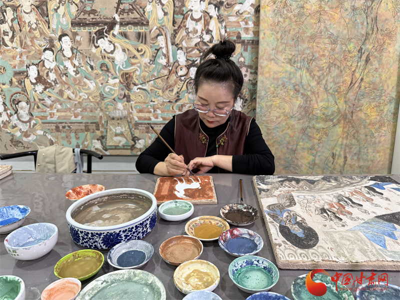 10月31日,由中央網(wǎng)信辦網(wǎng)絡(luò)傳播局、國家文物局政策法規(guī)司指導(dǎo),中國互聯(lián)網(wǎng)發(fā)展基金會特別支持,甘肅省委網(wǎng)信辦、省文物局主辦,張掖、嘉峪關(guān)、酒泉市委網(wǎng)信辦與敦煌研究院、中國甘肅網(wǎng)、鳳凰網(wǎng)甘肅頻道共同承辦的“何以中國|壁畫里的中國·當AI遇見小飛天”網(wǎng)絡(luò)主題宣傳活動采訪了敦煌石粉彩繪技藝的非遺傳承人王亞林。