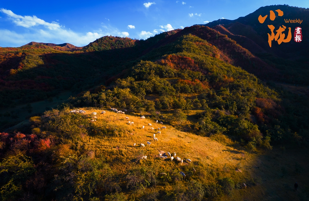 秋霜為祁連山披上金甲,往高處看,林木依舊保持著沉穩的墨綠,它們如同守護大地的勇士,身披綠意盎然的鎧甲,守護著這片美麗的田園。