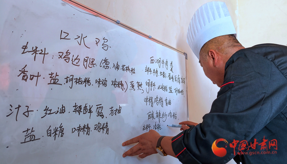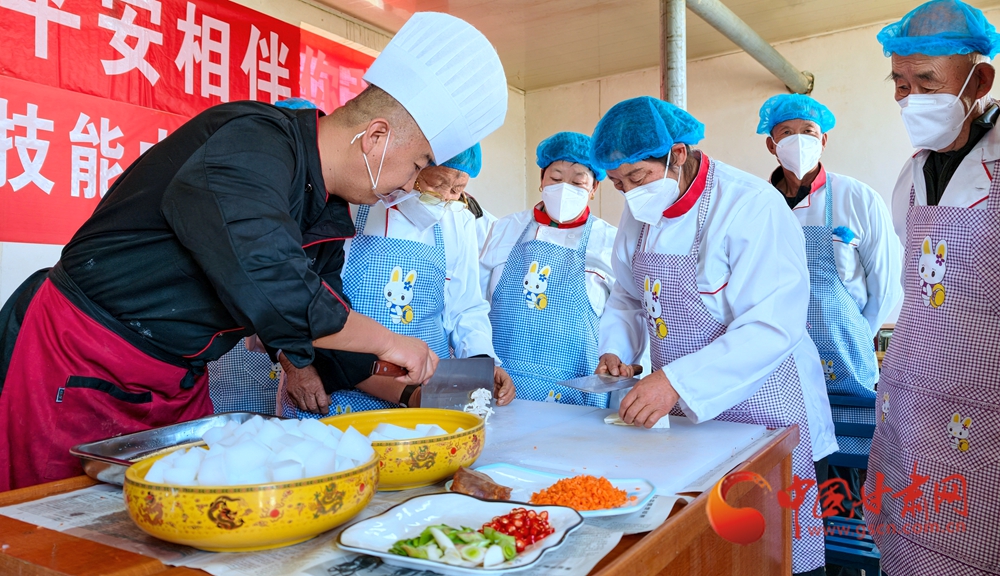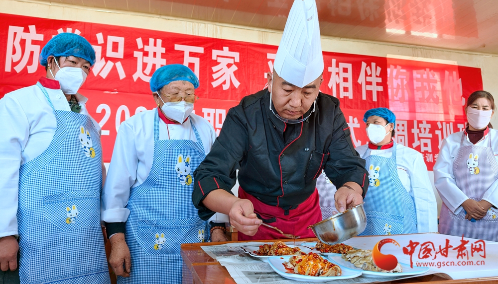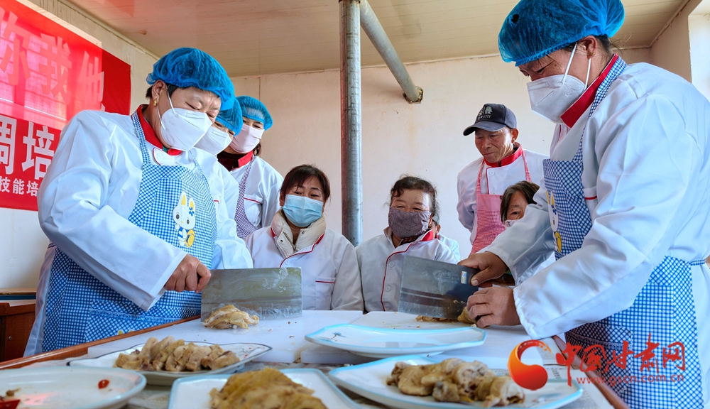 11月4日,金塔縣古城鄉頭號村,村民在培訓老師指導下正在學習廚藝。