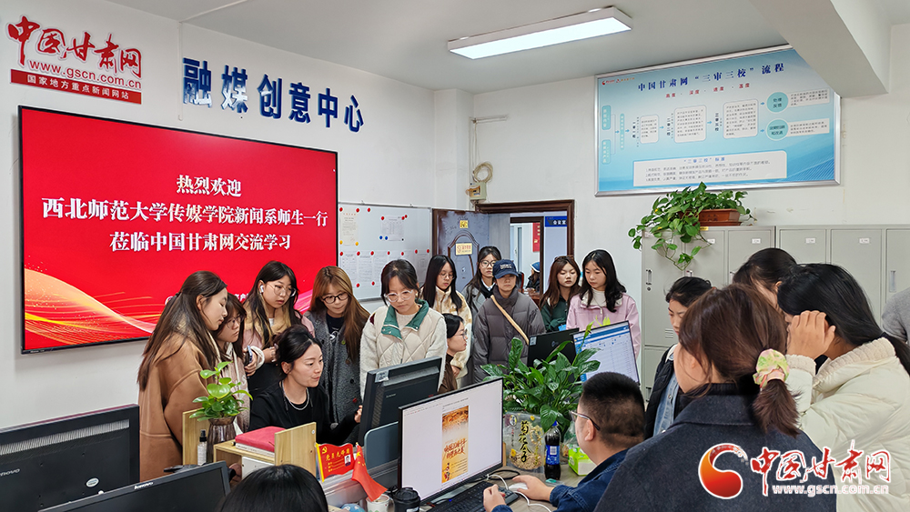 活動中,西北師范大學傳媒學院師生一行參觀了中國甘肅網的辦公區域,詳細了解了網站的發展歷程與建設成果。通過觀看中國甘肅網宣傳片,師生們對網站的媒體融合發展情況有了更為直觀的認識。此次參觀不僅拉近了學子與媒體實踐的距離,也為他們提供了將課堂所學與行業實際相結合的重要契機。