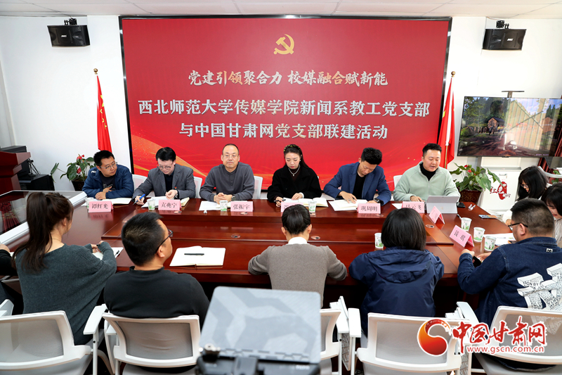 中國甘肅網11月14日訊(西北角·中國甘肅網記者 任磊)11月14日上午,西北師范大學傳媒學院新聞系教工黨支部與中國甘肅網黨支部共同開展了以“黨建引領聚合力 校媒融合賦新能”為主題的聯建活動。活動在網站智慧黨建甘肅紅云平臺體驗中心舉行,雙方圍繞黨建工作、媒體融合及人才培養等議題展開深入交流,共同探索黨建引領下校媒合作的新路徑。