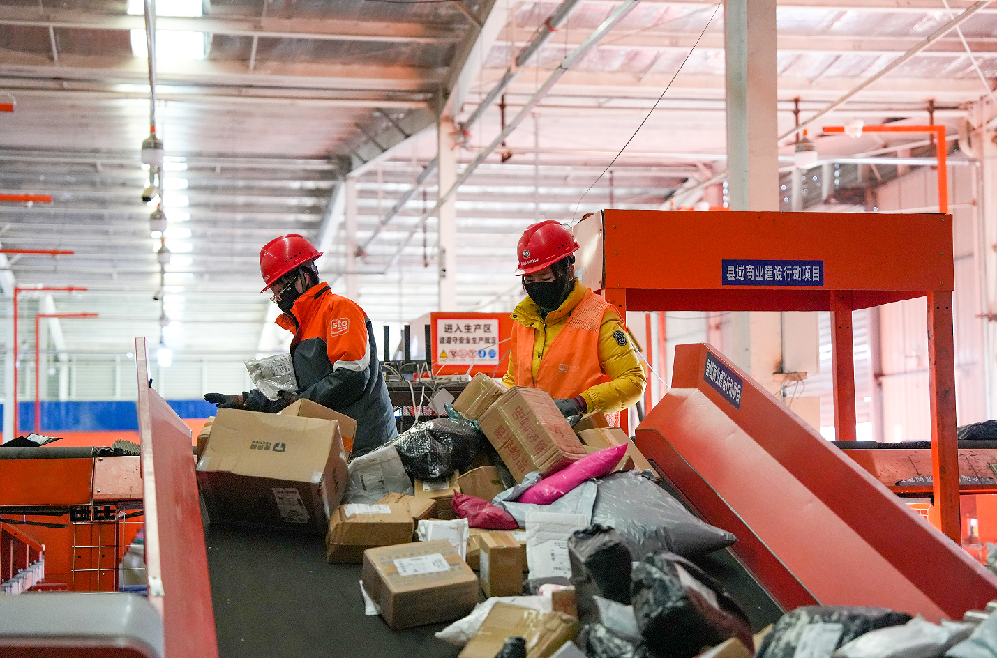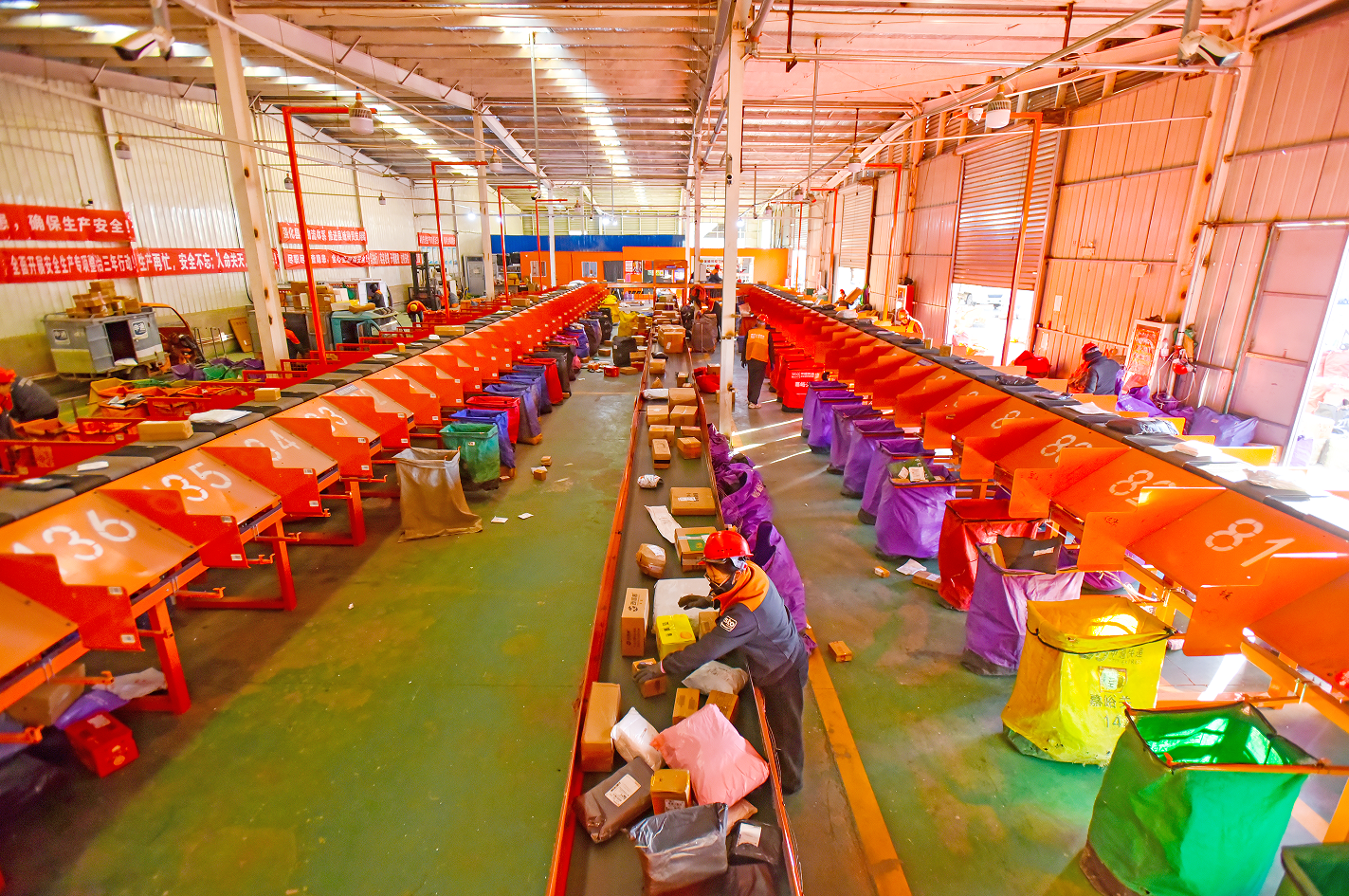 11月17日,嘉峪關金翼快遞物流園申通快遞分揀中心工作人員熟練執行著裝卸、分揀和掃碼等各項任務,智能化分揀設備高效運轉,現場一派繁忙景象。