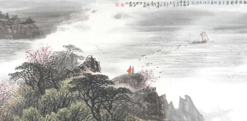 自古楚國多才子。楚人孟浩然,詩才橫溢。八月湖水平,一個“平”字,惟妙惟肖地描述出了洞庭湖煙波浩渺水天一體壯麗景色。