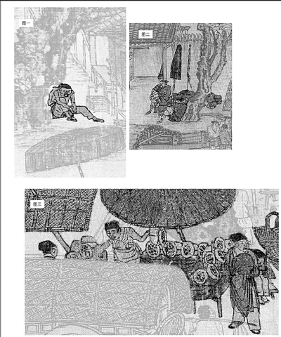 雖然沒有什么特別的社會意義、政治意義,或者其他宏大意義,但是對于個人來說,這個大叔卻喚醒了我們的某種情感,因此,讓我們與張擇端產生了情感共鳴。是怎樣的情感共鳴呢?請用心看圖,他裸露胳膊,衣著簡單,是一個中年勞工形象,此時也許是午間,他可能只吃了簡單的飯食(旁邊是飯館,他在飯館外的地上坐著,因此推測他沒有進店消費),甚至有可能他連午飯也沒舍得吃,只是坐在樹下歇會兒,然后就要開始尋找下午的工作。只要我們用心去看他的樣子,就知道他是真的累了。為了讓讀者更加確信他是因為真的疲累而休息,不知有意還是無意,張擇端在大叔附近的遞鋪墻外畫了幾個睡覺的人,請看圖二。其中,有一個靠著大樹睡覺的士卒,他翹著腿,雙臂圍攏,也在睡覺。