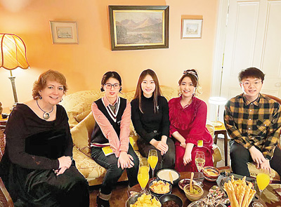 到愛爾蘭人家中做客、共度圣誕節,對張靜瑄來說是新鮮的體驗。“那天晚上,我嘗到了許多圣誕節的特色美食,比如烤火雞、布丁等,我們幾名中國學生帶去了餃子,和老爺爺、老奶奶一同分享。席間,我們聊到春節和圣誕節的慶祝方式、對東西方家庭的意義等,這讓我切身體會到了不同國家的文化差異,也拓展了我的認知,是我難忘的珍貴回憶。”周姝蕓