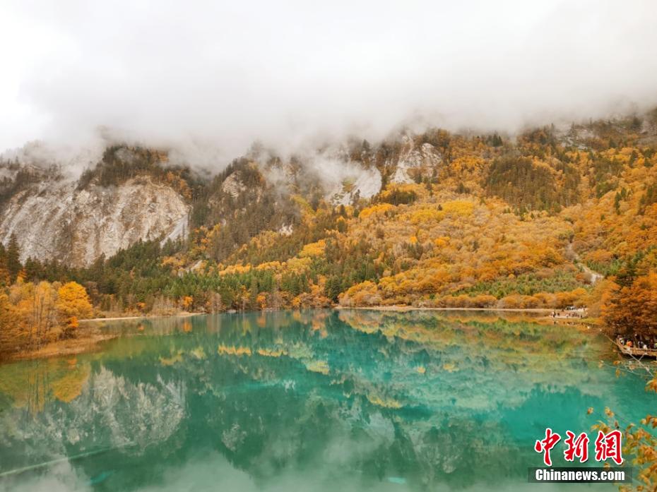 資料圖:深秋時節的九寨溝景區滿山的彩林與碧藍的海子交相輝映,宛如一個色彩繽紛的童話世界。曹惠君 攝