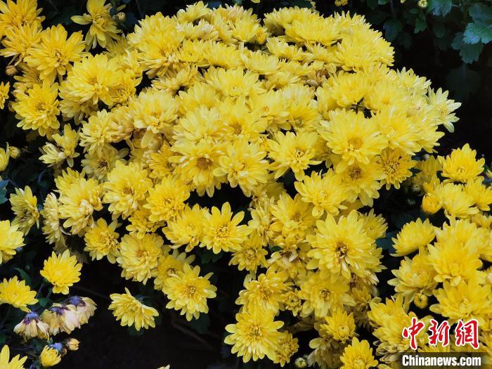 資料圖:圖為擺放在街頭的菊花。 祁增蓓 攝