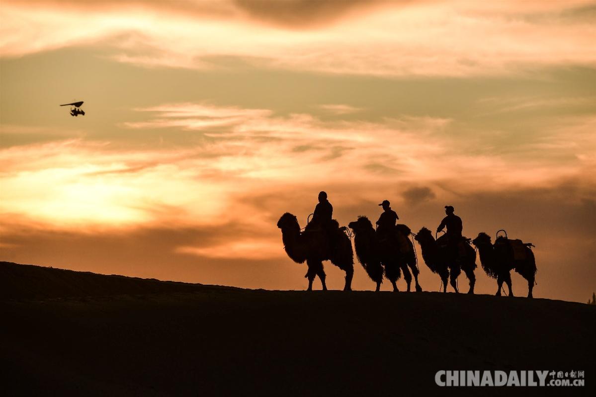 近日,來絲綢之路國際文化旅游名城甘肅敦煌游玩的游客,在騎駱駝暢游鳴沙山的過程中,驚異地發(fā)現(xiàn),這里牽駱駝的駝戶穿上了一種古裝戲中才有的“胡服”,戴一頂高高的帶有帽檐的駝色帽子,頓感大漠旅行情趣倍增,絲路風(fēng)情更加濃郁。