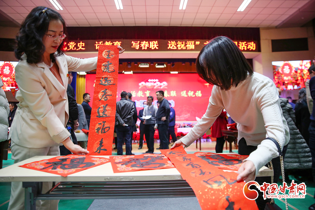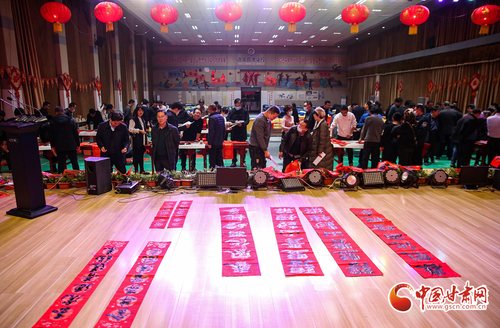 1月25日晚,甘肅省酒泉市教育局機關黨支部舉辦了寫春聯,迎新春活動。活動現場,來自市區兩級書協、美協及教育系統的書法家們筆走龍蛇,潑墨揮毫,行、隸、草等多種書體各顯神韻,一幅幅充滿喜慶、祝福的對聯在書法家的手中隨筆而出,為迎接新春佳節,弘揚傳統文化,營造歡樂、祥和的節日氛圍。