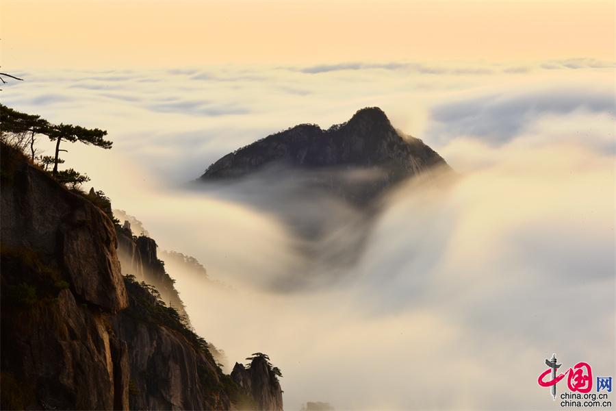 在黃山風景區的始信峰,群峰中時而云海翻騰,時而霧靄朦朧,時而艷陽高照,還出現了佛光奇觀,勾勒出一幅幅黃山獨有的勝景。