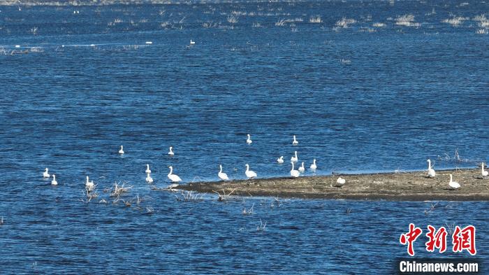 博湖縣境內的博斯騰湖白鷺洲迎來大批天鵝。 年磊 攝