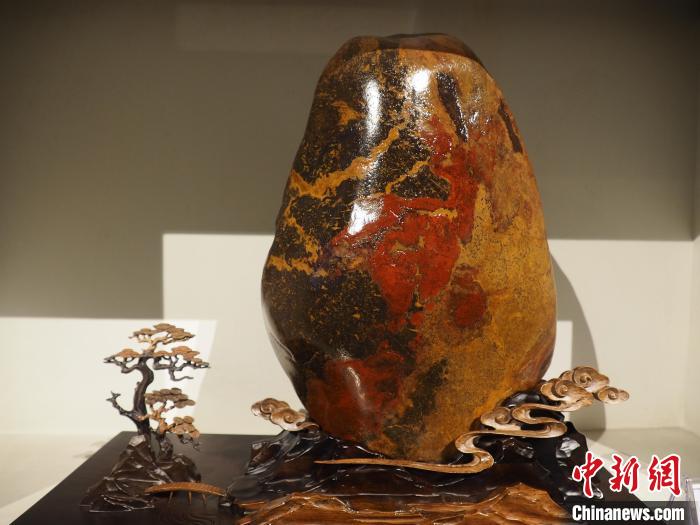 圖為現場的一塊奇石展品形如瓷瓶。李嬌陽 攝