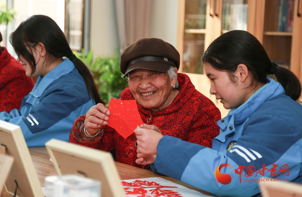 學生志愿者為老人們贈送剪紙作品